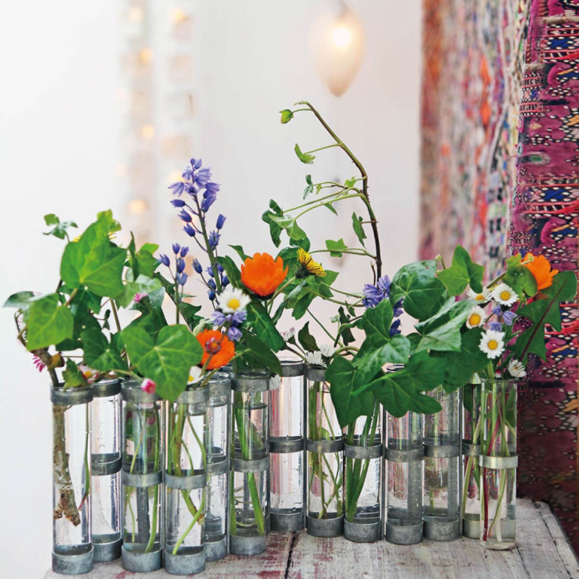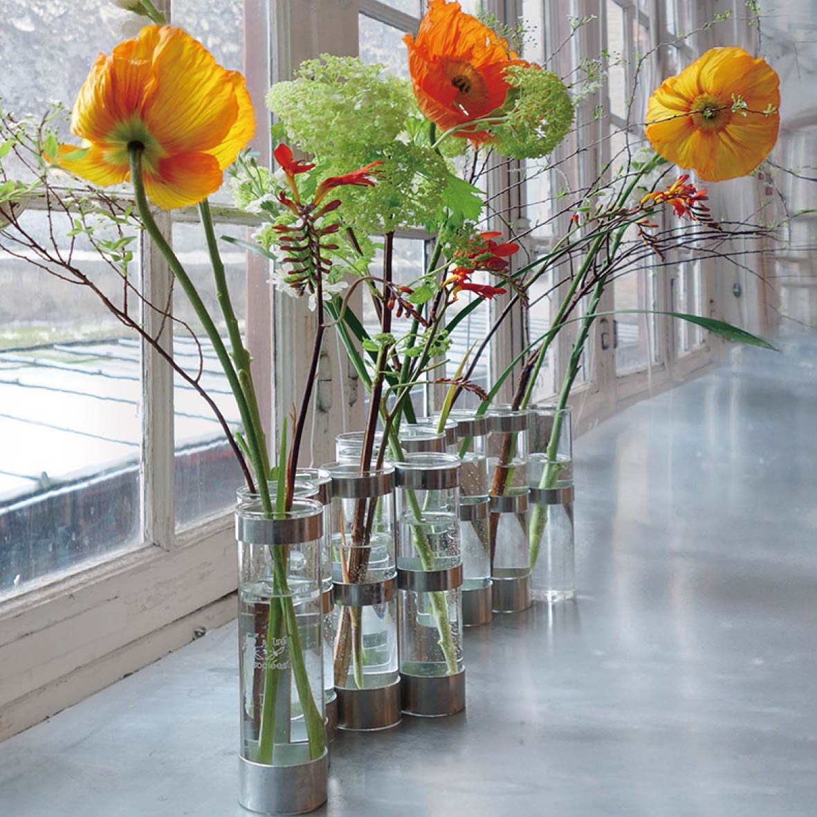 このXXLサイズの花瓶は、12本のチューブが金属製のリングで繋がれているユニークなデザイン。形を自由に変えて、無限の楽しみが広がります! 使用しているチューブは「ガラス管」ではなく、特別なスタイルの本物の試験管です。フラワーアレンジメントのスタイルや気分に合わせて、お好みのデコレーションをお楽しみいただけます。